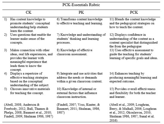 - Park, S.; Jang, J.-Y.; Chen, Y.-C.; Jung, J. Is Pedagogical Content Knowledge (PCK) Necessary for Reformed Science Teaching?: Evidence from an Empirical Study. Res. Sci. Educ. 2010, 41, 245–260. [Google Scholar] [CrossRef]
