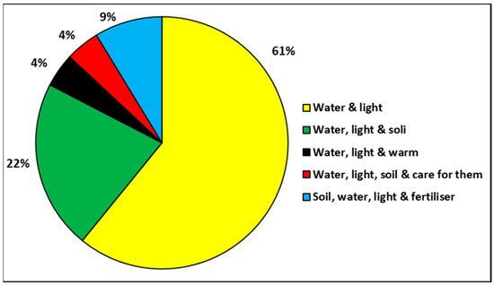 A second question was asked for variables: “What do plants need to live and grow?”, the answers to which are shown in Figure 1.