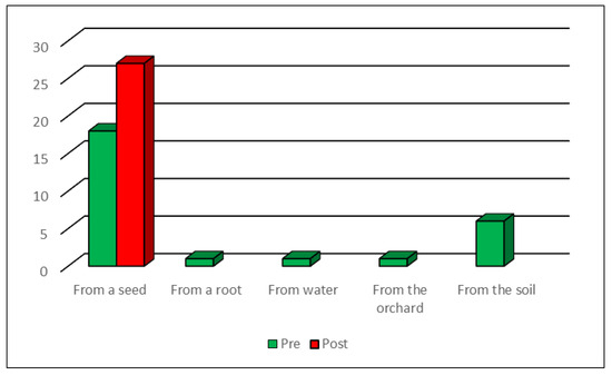 Responses to the question “Where does a plant come from?” before the intervention (Pre) and after the intervention (Post).