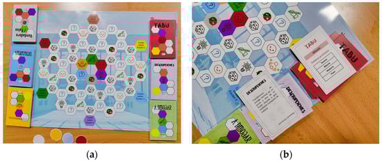 In addition, at this stage, the rules and regulations were proposed for the board game to be developed. In this regard, the students’ prior experience with playing such games (outside the educational context) was very important as it affected (1) the game design, allowing it to be adapted to be more accessible and attractive to different skill levels; (2) the evaluation of learning, i.e., it helped to more accurately measure the educational impact of the game as it allowed differentiation between what the players already knew and what they have learned; (3) motivation, i.e., knowing the prior experience helped keep players motivated by offering challenges appropriate to their skill level; and finally, (4) personalization, i.e., this facilitated the personalization of the game experience, making it more relevant and effective for each player [21]
