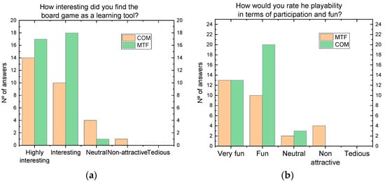 Extension to the Microstructure and Phase Transformations subject. Results section 1: board game experience evaluation; (a) interest, and (b) playability.