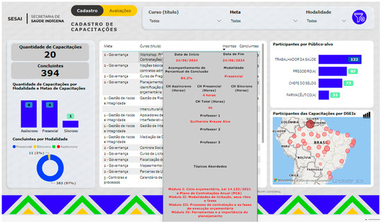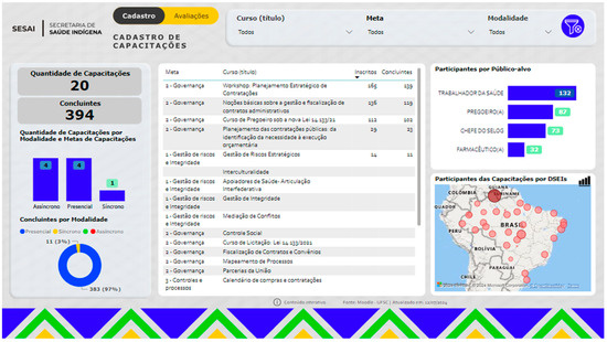 The dashboards allow both quantitative (Table 1 and Figure 2) and qualitative (Table 2 and Figure 3) monitoring and provide additional data (Figure 4 and Figure 5). This allows monitoring of information about the continuing education carried out at SESAI/MS.