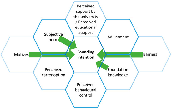 The links between entrepreneurship education and students’ entrepreneurial intentions are increasingly being investigated using the TPB [14,16,23,24]. In addition to the influence of entrepreneurship education on entrepreneurial intentions, the educational context (e.g., the university) is also important [25]. The results of previous studies and investigations are inconsistent and disagree on whether entrepreneurship can be promoted through education. While some studies report positive effects of entrepreneurship education on entrepreneurial intentions [26,27,28], others report evidence that the effect is statistically irrelevant or even negative [29,30,31].