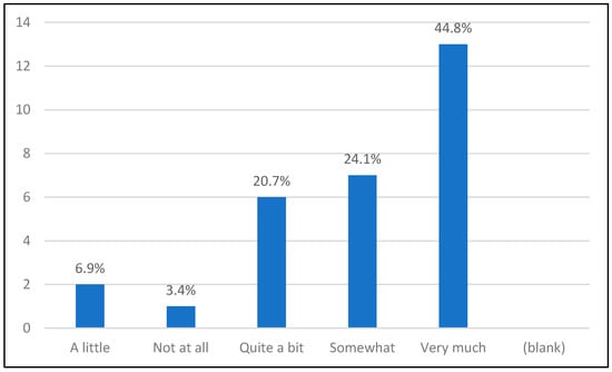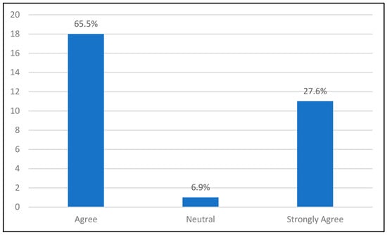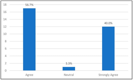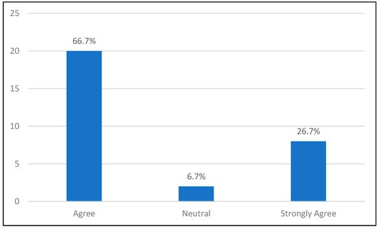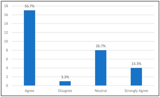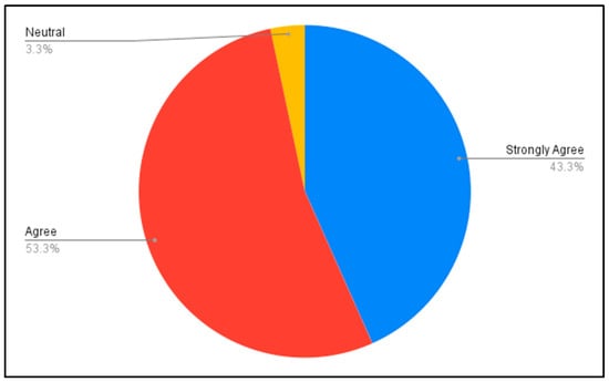 The questions were validated through an expert review process to ensure their relevance and clarity, following the best practices for questionnaire validation [54]. Additionally, a pilot study was conducted with a small group of respondents to further refine the questions and ensure they were consistently understood and effectively captured the intended constructs [58]. The questionnaire consisted of a combination of Likert scale items, multiple-choice questions, and open-ended questions that allowed for quantitative analysis and qualitative insights into students’ experiences. This mixed approach increased the validity and reliability of the results as it allowed for a comprehensive understanding of the data and ensured consistent and reliable results through multiple forms of response collection [59,60].