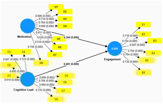 The data collection instruments were adapted from previous research. The constructs—motivation, cognitive load, and engagement—were measured using questionnaires adapted from Keller [], Leppink et al. [], and Hart, Stewart, and Jimerson [], respectively. A 5-point Likert scale was used, with 1 representing “strongly disagree” and increasing to 5 representing “strongly agree”. Each respondent, on average, spent at least 20 min to fill the questionnaire. The questionnaires were administered online through the institution’s LMS after the respondents had taken a semester course, as indicated in Table 1. To enhance the rate of response, students were regularly reminded to complete the online questionnaires. Of the 407 participants, 387, representing 95%, responded (see Table 1).