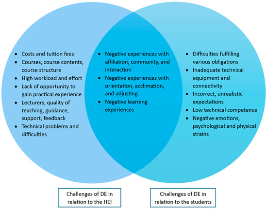 Challenges related to the students: The challenges that primarily fell within the control of distance learners, and which they could influence and manage, encompassed balancing various responsibilities, dealing with insufficient technical equipment, managing misconceived expectations, overcoming limited technical skills, and coping with negative emotions or mental and physical stress.
