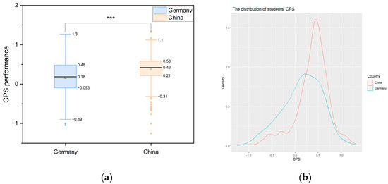 Comparison of CPS performance (a) and performance distribution (b) among Chinese and German students. *** p < 0.001: The difference is significant at the 0.001 level.