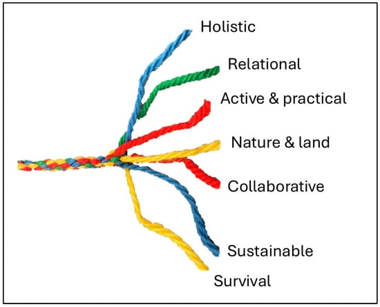 Our study has implications for teachers aiming to integrate Sámi or other Indigenous pedagogical principles into their teaching for majority populations. Braiding as a metaphor connects time, space, generations and traditions and honors every thread that is woven. In this work, relationships are crucial. Engaging with culturally sensitive topics, such as Indigenous issues, should begin with easily conceivable connections. Reflecting on how we, as researchers, teachers, and students, relate to the Sámi culture through our ancestors and land in our current environment is an essential starting point. Despite the wealth of information that can be found online today, including information on Indigenous cultures, direct experiences such as cooking over a campfire remain invaluable. Engaging with traditional knowledge and skills and sustainable living practices can develop competencies for a sustainable future []. Particularly, the dimension of cultural sustainability is important, as it aims to honor and revitalize Indigenous cultures with pride and respect. Braiding Sámi knowledge into ECTE may extend beyond this research and can be perpetuated by our students as future teachers in kindergarten and beyond.