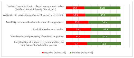 | Content | Lack of relevance of the courses and disciplines taught Formal approach to the development of educational programs Insufficient variety of disciplines to choose from Insufficient quality of discipline/syllabus materials Formal choice of teacher and courses Low satisfaction of employers with the quality of graduates |