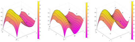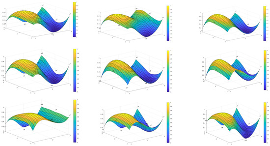 In order to make the PMC index results more intuitively presented, the PMC surface can be constructed after the PMC index is obtained because there are nine variables at the first level, making the variables a 3 × 3 matrix. The PMC surface calculation is shown in Equation (5).