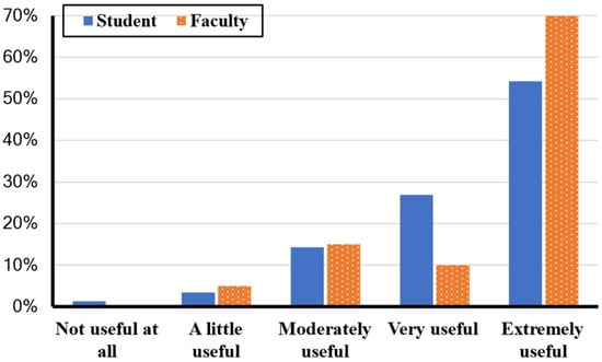 The survey results regarding the usefulness of recorded demonstration videos and tutorials in online labs are shown in Figure 7. There is a broad consensus among students that recorded materials are “very” to “extremely” useful. Faculty also overwhelmingly endorse the usefulness of recorded materials.
