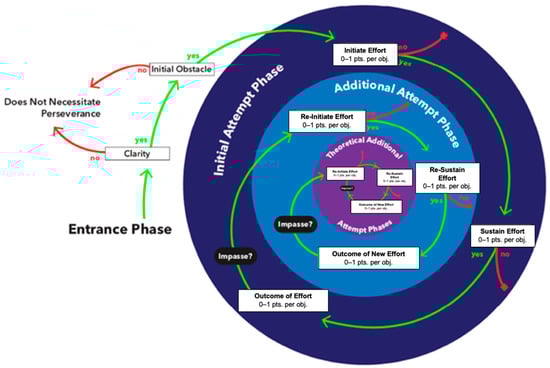 The Entrance Phase determines the appropriateness of the task for the participant. For perseverance to be reasonable on a task, the participant must first understand what the task is asking (Clarity component). Just as important, the participant must also not immediately know a solution pathway (Initial Obstacle component). If these two components are affirmative, further analysis can occur by considering a participant’s initial and additional attempts at problem-solving.