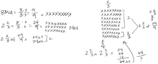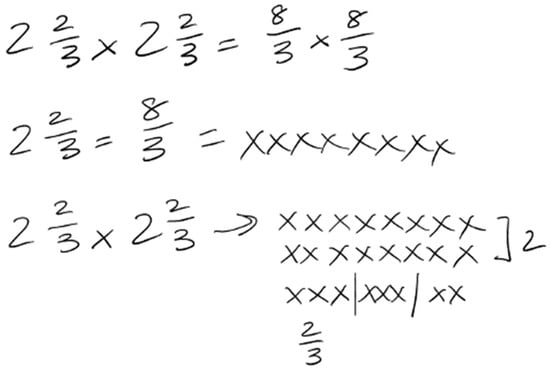 During their seventh problem-solving session, Participant 6 engaged with the following challenging task: Draw an area model to show the product of 2/3 and 4/3.