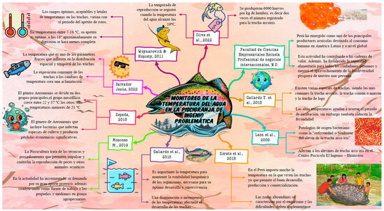 - Understanding the problem: In this phase, students engaged in various activities, including: researching information about the issue related to the proposed topic by consulting multiple scientific sources such as Scopus, Google Scholar, Scielo, and Redalyc; analyzing and synthesizing the collected information to create a detailed description of the problem; developing a visual organizer to represent the cause-and-effect relationship of the issue, which helped them achieve greater clarity and understanding of the problem. Figure 3 illustrates the cause-and-effect relationship for the research topic titled “Monitoring Water Temperature in the Ingenio Fish Farm”.