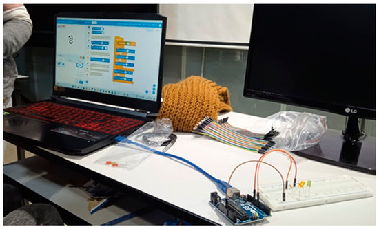 Numerous studies have demonstrated that teaching and learning methods incorporating technological resources (such as Arduino boards, electronic sensors, computers, and programming languages) improve students’ academic skills [19,20,21]. These methods also allow for the implementation of various solutions tailored to the students’ contextual realities. The presence of technological resources enables students to eagerly observe anticipated results, providing immediate visual feedback, motivating them to test and refine their hypotheses and ideas effortlessly [17,55].