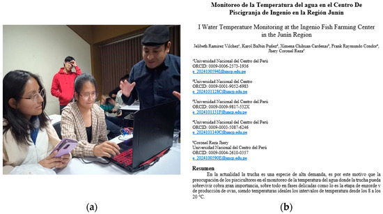 - Planning of activities. In this phase, various tasks were conducted, including searching for information to review related works or precedents concerning the research topic. After collecting the relevant background, students analyzed and identified similar activities to propose a list of objectives. Below is the list of proposed activities for the research topic “Monitoring Water Temperature in the Ingenio Fish Farm”: