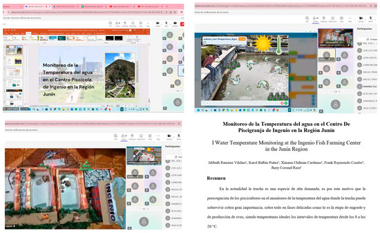 Students were motivated to participate in the “XXI Formative Research and Technology Conference of the Faculty of Systems Engineering 2024-I”, where they presented their research findings through an article. The students’ presentations were conducted via the Microsoft Teams platform. Figure 7 shows screenshots of the students’ presentations.