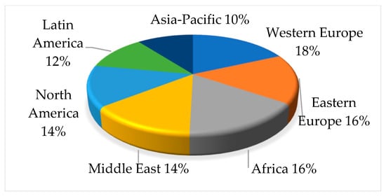 Regional analysis of the game-based learning market. Adapted from Game-based Learning Market Share, Market Share in Percent, by Market.us Scoop, 2024, Metaari “https://scoop.market.us/game-based-learning-statistics/ (accessed on 30 June 2024)”.