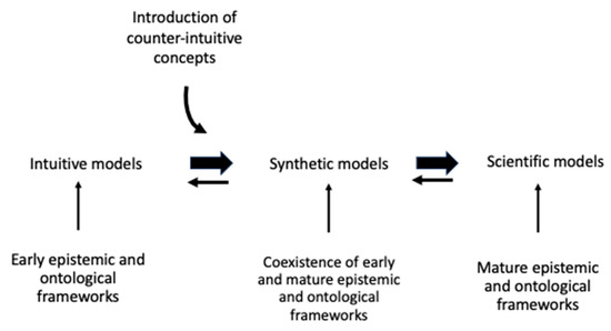 Other epistemic changes are making internal representations without external help [24], creating multiple representations of a phenomenon [25] based on its different relations, and evaluating and challenging their own misconceptions, beliefs, conflicting data and non-plausible conclusions [26]. Also, to test hypotheses and “to differentiate between ideas, experiments, and results” [15] are epistemic changes. Scientific emergence depends on this dynamic process for epistemic and ontological development, as synthetic models are important intermediate bridges towards the scientific model. Through this process, children begin to master scientific fragments and to recognize the discrepancies of their initial ontological and epistemological beliefs. They have an opportunity for changing their general conceptions, which eventually facilitates scientific thinking. Using a scientific explanation across similar, but different examples, and cases of the same phenomenon in a consistent and coherent manner, is a strong indication of scientific emergence.