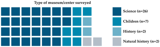- Association of Science and Technology Centers. Weekly Attendance and Operations Survey Aggregate Report: July–August 2020. 2020. Available online: https://www.astc.org/wp-content/uploads/2020/10/Aggregate-Report-FINAL.pdf (accessed on 30 April 2022).