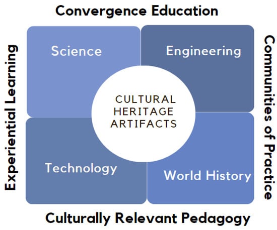 Convergence education is driven by compelling or complex socio-scientific problems or topics, where learners apply knowledge and skills using a blended approach across multiple disciplines (i.e., transdisciplinary) to create and innovate new solutions [8]. Widya et al. discuss the importance of making connections between what is taught in the STEM classroom and what is occurring in daily life to improve student learning by [9]. Science communities are striving to revise the traditional process of learning where students follow step-by-step procedures to perform a given task to reach a conceptual understanding of the content [10]. The transition from step-by-step labs to a more problem-based and inquiry model represents more of an integrated STEM approach to learning. The integration of engineering design practices into science education allows students to solve relevant real-world challenges that our society faces. The Next Generation Science Standards (NGSS) is committed to leveling engineering design with scientific inquiry within elementary and secondary education [11]. To address these needs, we posit a modular, experiential transdisciplinary STEM support curriculum that addresses a global and cultural thread through cultural heritage conservation. Culturally relevant STEM (CReST) is a transdisciplinary learning program that leverages artifacts of cultural heritage as boundary-crossing objects to enable students and teachers to connect key concepts of science, technology, engineering, and mathematics (STEM) to their personal and collective background and experience through convergence education. CReST aims to increase the diversity, equity, and interest of student learners through culturally relevant teaching and structured, hands-on, and transdisciplinary learning.