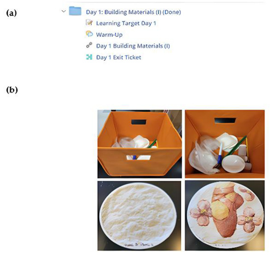 Each module lesson comprised of a daily learning target, Google Slide Decks for direct instruction of the content, and experiential materials along with warm-up and exit assessments that integrated state standards of learning (Figure 2 ). The development of the six instructional days of CReST originated from the life-cycle creation of the artifact used in this study, the fresco. The topics selected for each of the days directly align with the experiential activity that is partnered with the content (World History, Chemistry, and Engineering), presented in each of the daily Google Slide Decks as the convergent instructional time. To create a fresco and then go through the conservation process, a minimum of six days of learning was required for schools that meet every other day for an eighty-five-minute class period. The experiential learning kits included 4″ circular tile molds, Rubbermaid dish pans, 50 mL disposable beakers, soft graphite pencils, gloves, small plastic cups, paint brushes (small and large), rice paper, Ziplock bags of Arbocel [38], disposable pipettes, pasty dishes, and Isopropyl Alcohol. Classrooms were also provided with washed sand, hydrated lime putty, and pigment. The curriculum and resources were housed in the participating school division learning management system, Schoology.