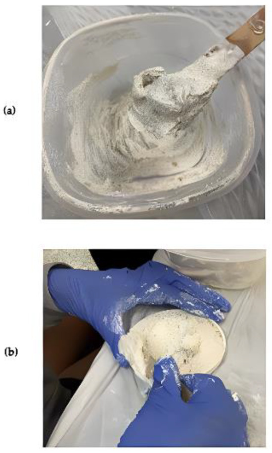 Day 1 experiential learning activity: (a) preparation of the mixture of grassello and sand; (b) preparation of arriccio using a disposable mold.