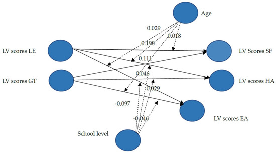 School satisfaction positively determines school connectedness (0.691) and joy of learning (0.324). The impact of school satisfaction on academic efficacy seems negative (−0.387). This effect requires more attention and has to be examined further to identify the reasons.