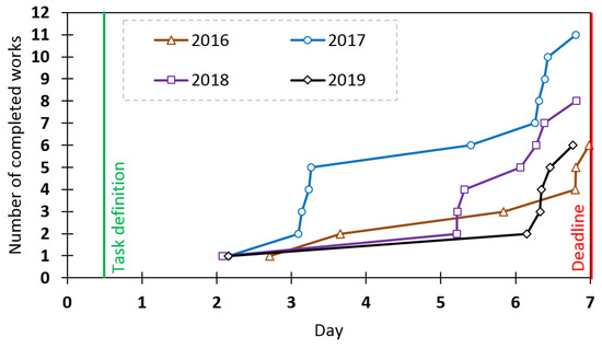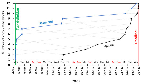 | Year | Publication Date (p) | Deadline Date (d) | Download Date (t1) | Upload Date (t2) | Grades | Homework Duration (d − p) |