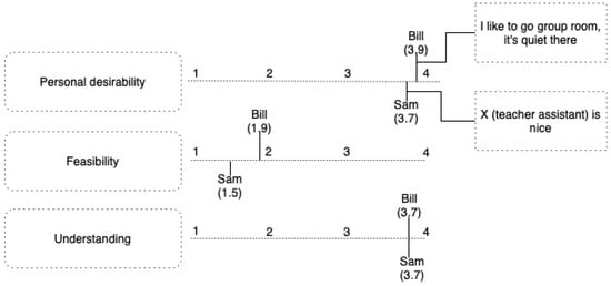 Figure 3 shows the mean score for each of the three factors of the CURP-A. Both students rated the personal desirability and understanding subscales high, indicating that they appreciated the intervention and understood why it was implemented. The results from the feasibility subscale, which was inverted, were positive for both Bill and Sam, indicating that they largely viewed the CPS intervention as feasible.