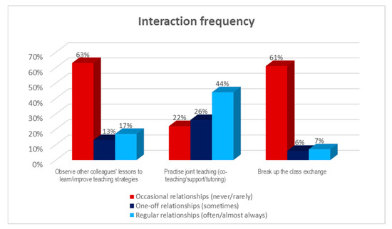 This is another piece of information confirming that educational teams are turning into learning communities, as leadership is very important in the creation and sustainability of learning communities [19,35,56] due to the fact that it plays a fundamental role in bringing together visions, wills and resources [57].