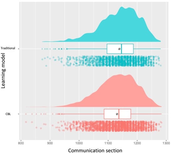 Table 3. Cross-table for students’ performance level for the communication section, in EGEL-PLUS exam, by learning model. Count (row percentage) is shown.