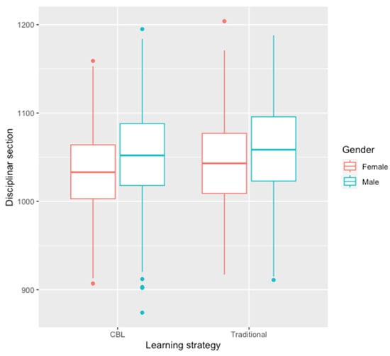 Table 10. Exploratory statistics variables for samples (disciplinary score of EGEL-PLUS) of female and male students under CBL and traditional learning strategies.