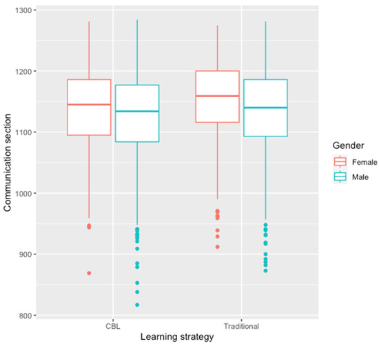 Table 11. Exploratory statistics variables for samples (communication score of EGEL-PLUS) of female and male students under CBL and traditional learning strategies.