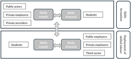 Skill system—skill formation and deployment of skilled labour. Source: Authors’ own elaboration based on Green (2013) [] and Capsada-Munsech and Valiente (2021) [].