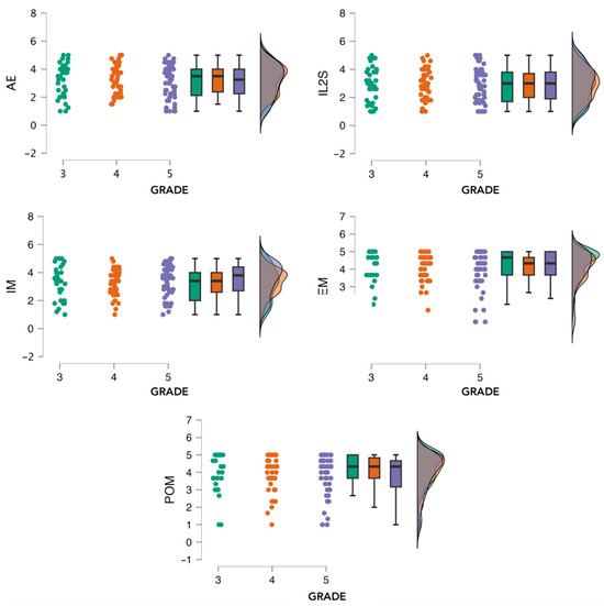 No significant differences were found in the motivational and attitudinal variables based on the grade they were enrolled in for any of the five factors, as depicted in Figure 7