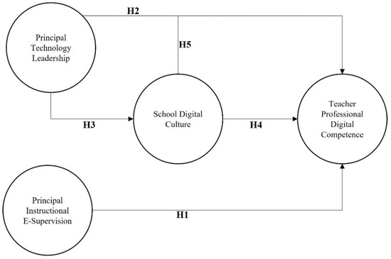 In Indonesia’s context, to enhance teachers’ competency in information and communication technology (ICT) in line with the demands of the digital-savvy era, the Ministry of Education and Culture (Kemendikbud), through the Center for Data and Information Technology (Pusdatin), reintroduced the ICT-Based Learning Program (PembaTIK) in 2021 with the theme “Sharing and Collaborative Learning Together on the Rumah Belajar Portal”, which aims to attract 75 thousand teacher participants, building on the success of the previous year’s engagement with 70 thousand educators [79]. In addition, various factors influence teachers’ professional digital skills, such as teacher education (TE), including leaders’ role at the organizational level [38]. In this study, we examined the principal role of a school technology leader and instructional e-supervision to influence teachers’ professional digital competence by developing a school digital culture, as there is no quantitative study that has been conducted aligning this with TPDC.