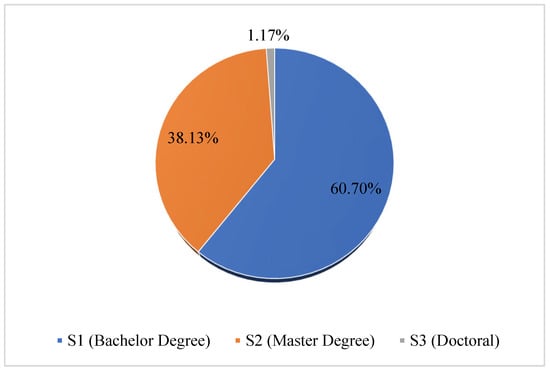 Figure 2 shows that the majority of respondents in this study come from a Bachelor’s (S1) educational background (60.70%). This is in stark contrast to the Doctoral (S3) educational background, which has only (1.17%). As for teachers who pursued Master’s level education, the number 38.13% is half of the Bachelor’s background percentage.