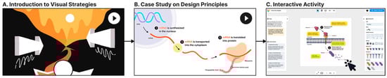 - Well-designed visual instructional media and frameworks for using visual representations in biology education (e.g., BioMolViz (biomolviz.org (accessed 11 July 2022))) and VISABLI (www.visabli.com (accessed 11 July 2022)).