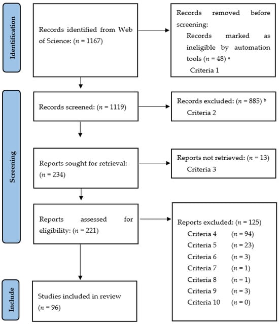Data research was limited to the year 1975, the earliest year of publication Web of Science can access, until the 13th of May 2023, the date of data extraction. Studies included in the analysis had to meet the criteria listed in Table 1.