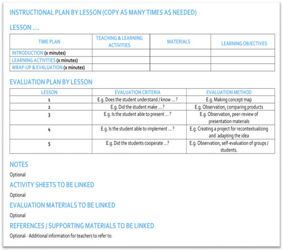 - The activity template developed within the project (Figure 2), filled out by the teachers;