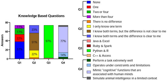 Participants’ knowledge base regarding artificial intelligence (AI) and its applications. The average of each response per category is shown. Areas without numbers have fewer than 10.0% of answers.