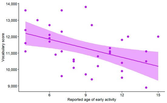 Chicago/Turabian StyleBusby, Nicole Louise. 2024. "Exploring the Effects of Early Extramural English Exposure on the Vocabulary Size of University Students" Education Sciences 14, no. 4: 372. https://doi.org/10.3390/educsci14040372