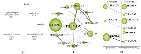 (a) Strategic Diagram; (b) Thematic Network Structure; (c) Thematic Evolution Structure [45].