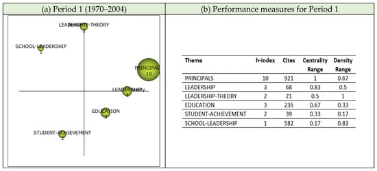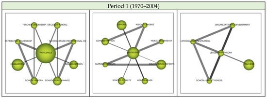 Science mapping analysis of the 1114 articles published during Period 1 identified the PRINCIPALS theme along with LEADERSHIP and LEADERSHIP-THEORY themes. These three themes were the motor themes (Figure 5) underpinning investigations into leadership in schools and enabling the development of the research field in this direction. These early studies about school/educational leadership emanated from the research and policy focus on school effectiveness, particularly during the 1980s [49,50,51]. These studies generally assumed a central leadership role for principals [52,53], in addition to their management or administrative roles. The assumption that educational leadership was synonymous with principal leadership [54,55] was largely reflected in the leadership research during Period 1.