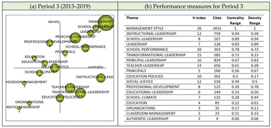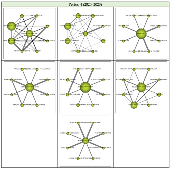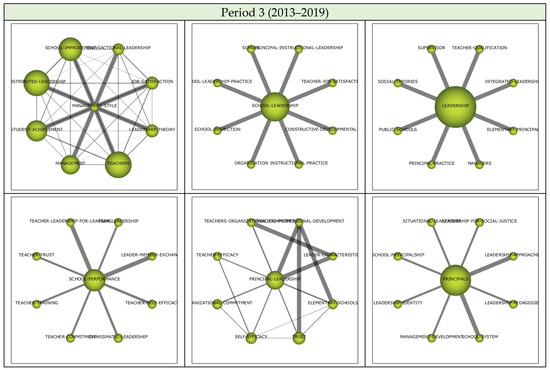 The science mapping analysis of the 1413 articles published during Period 2 revealed that the focus on PRINCIPAL and HEADTEACHER themes continued along with the LEADERSHIP theme (Figure 7).