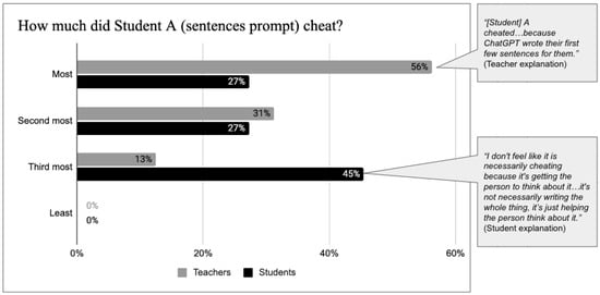 3.2. Finding 2: Students and Teachers Had Similar Opinions about Learning with ChatGPT but Different Opinions about Cheating with ChatGPT