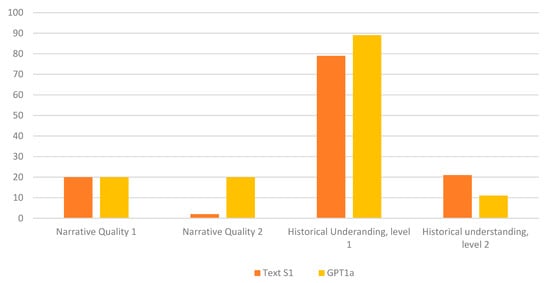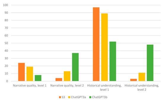 This section summarizes the results of the data analysis. Refer to Appendix A for details of the analysis and to Appendix B for contrasting examples of student and ChatGPT writing styles. Table 3 provides a comparative overview of the texts based on the categorization of narrative qualities and historical understanding.
