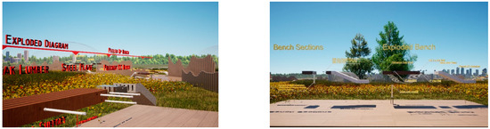The XR intervention in this research allowed students to co-create an immersive VR exhibition space where their versions of the High Line bench construction details were showcased. This phase was designed to synthesize the skills and knowledge acquired in the previous stages, enabling them to be applied in an innovative XR environment. The exhibits consisted of detailed 3D models dissecting the High Line benches in digital space and the annotation of the construction details.