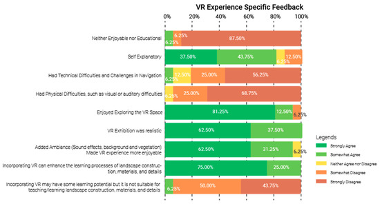 Landscape architecture learning and design development often require the complex site-specific understanding of culture, ecology, indigeneity, perception, and seasonality, which occurs outside the studio [34]. In contrast, the traditional mode of landscape architecture education has long been studio-based [35]. The discipline demands that learners understand the intricate patterns, processes, and scales that shape a landscape. With its capability to provide a comprehensive view of landscapes, XR can aid in integrating these pattern–process–scale perspectives in landscape design [36]. Sirror, Abdelsattar, Dwidar, and Derbali reviewed VR applications in various fields of architecture education, confirming that adopting VR and AR technologies advanced student learning [37]. According to their findings, incorporating VR allows for exploratory learning, where students can experiment with design solutions in a risk-free environment, and simulate real-world scenarios that might not be otherwise accessible. Research suggests that VR technology, when used in architecture education, particularly in building construction courses, enhances the learning experience by providing students with information on building construction, while mitigating risk factors, achieving enjoyment, and integrating with other courses [38]. This supports the argument for incorporating VR into architecture and landscape architecture education to foster a collaborative and immersive learning environment.
